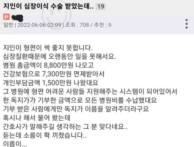 지인이 심장이식 수술 받았는데..