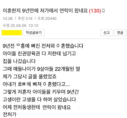 이혼한지 9년만에 처가에서 연락이 왔네요